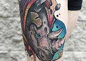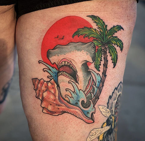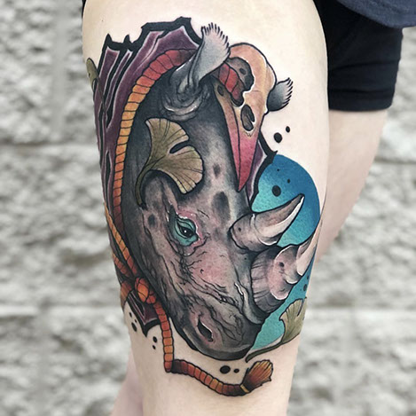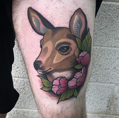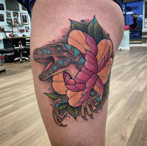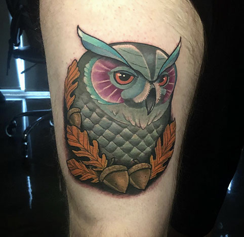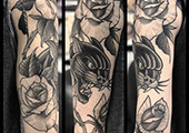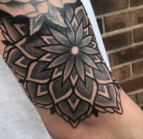 Jes Stricler ﷯JES IS A SELF TAUGHT TATTOO ARTIST AND CREDITS HIS CLIENTS, FRIENDS AND OTHER TATTOOERS FOR PUSHING HIS CREATIVITY. HE IS ONE OF THE MOST VERSATILE TATTOO ARTISTS IN THE MIDWEST BUT IS OFTEN RECOGNIZED FOR HIS NEO-TRADITIONAL COLOR TATTOOS AND HIS GEOMETRIC BLACK AND DOTWORK. CREATING CUSTOM TATTOOS WITH CLEAN LINE WORK, LOTS OF BLACK, BRIGHT COLORS, AND HIGH CONTRAST IS WHAT YOU WILL FIRST NOTICE WHEN LOOKING THROUGH JES'S PORTFOLIO. AT THIS POINT IN HIS CAREER HE DOES MANY LARGE SCALE TATTOOS (SLEEVES, BACK AND CHEST PIECES, FULL LEGS), ALWAYS PAYING ATTENTION TO THE WAY A TATTOO FLOWS ON THE BODY AND HOW IT WILL HOLD UP OVER TIME. JES LOVES PUTTING HIS OWN SPIN ON YOUR IDEA AND SOME OF HIS FAVORITE THINGS TO TATTOO ARE: ANIMALS, FLOWERS, MANDALAS, LADY HEADS AND ANY JAPANESE SUBJECT MATTER. JES IS CURRENTLY TAKING ON PROJECTS THAT ARE CREATIVELY INSPIRING TO HIM AND WOULD LOVE TO HEAR YOUR IDEAS FOR YOUR NEXT TATTOO. JES IS HUGE STAR WARS FAN, HE LIKES WORKING OUT, PLAYING WITH HIS DOGS AND FOUR WHEELING IN HIS JEEP.
